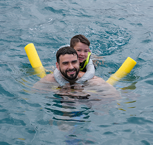 Infants swim and snorkel for free! Our boat is safe and secure for infants.